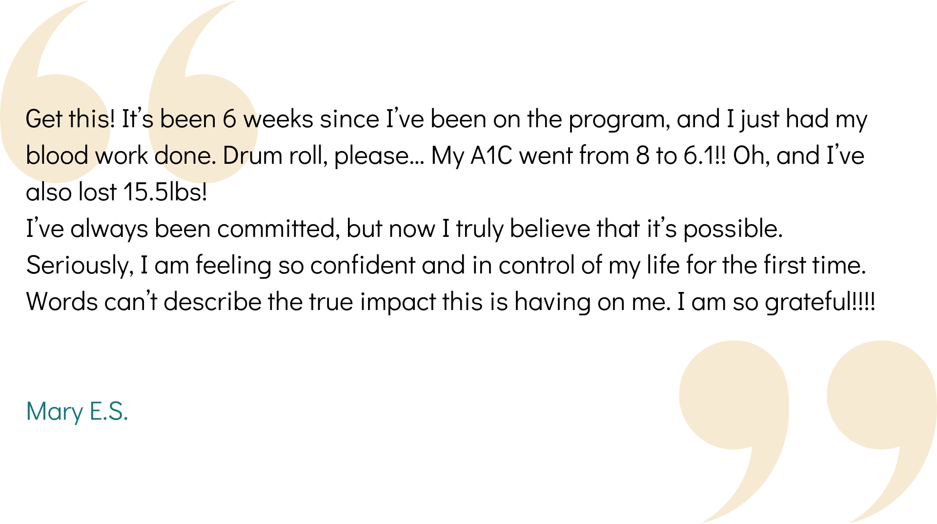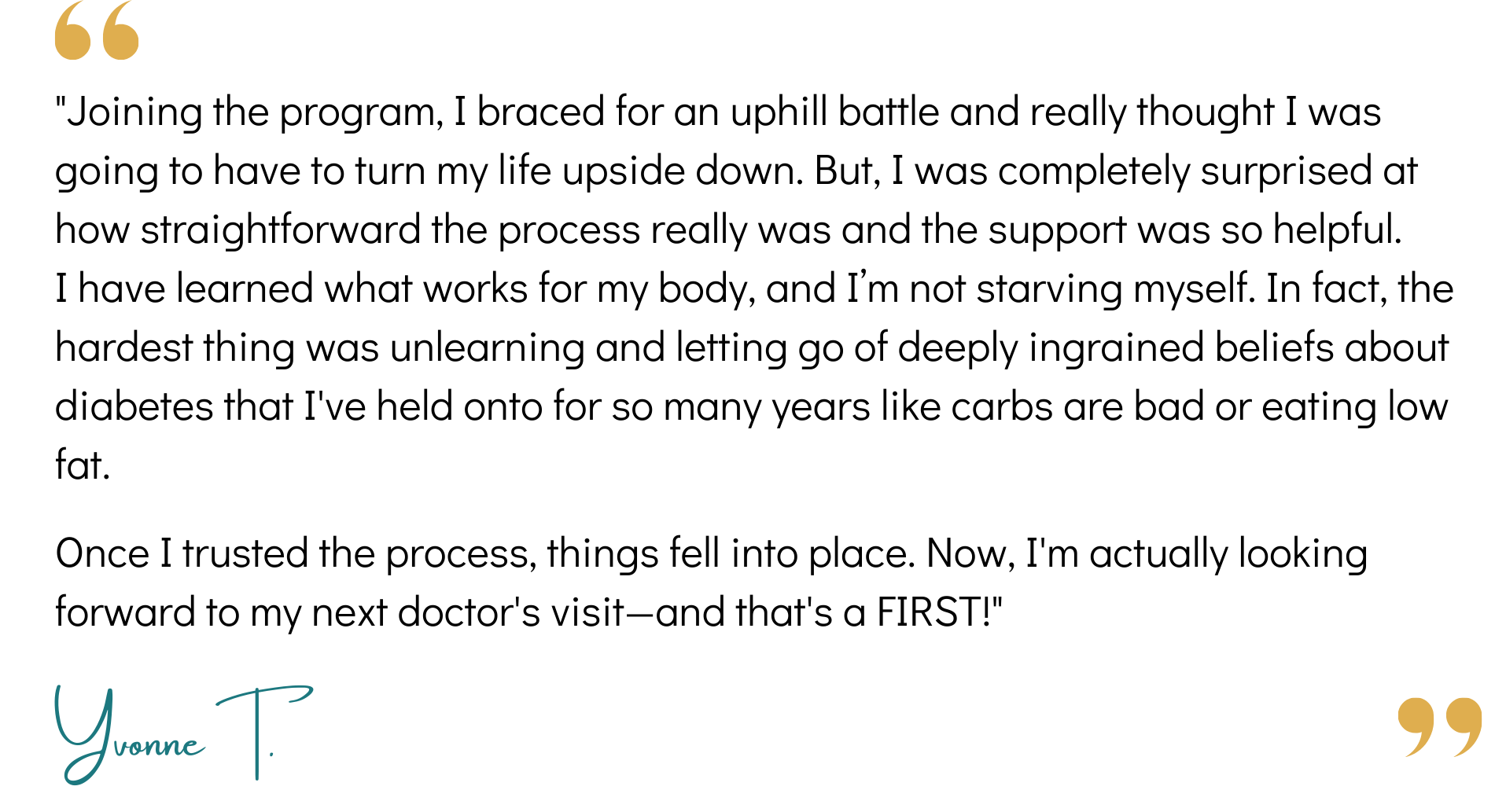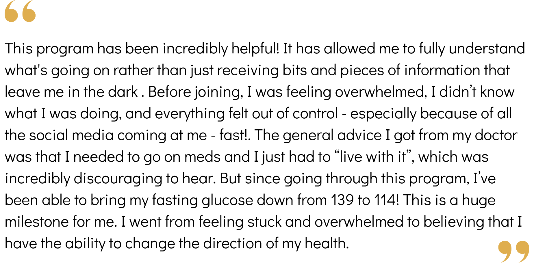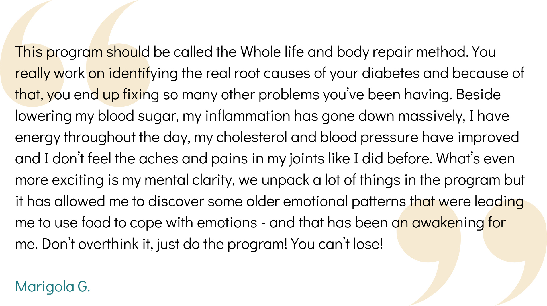 To know that you’re not just managing the symptoms of your diabetes but actively taking steps to repair your body from the inside out, so you can regain control and finally feel good again.