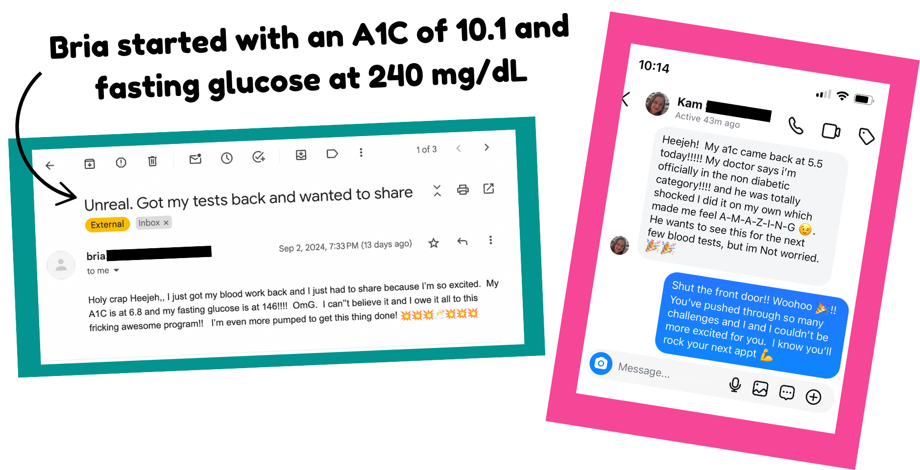 We regained control of his health, stabilized his A1Cs, and brought them back to normal levels, where they’ve stayed for over eight years.